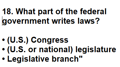 | 018. What part of the federal government writes laws? |