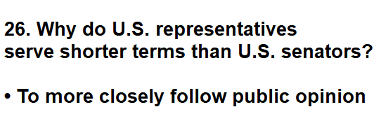 | 026. Why do U.S. representatives serve shorter terms than U.S. senators? |
