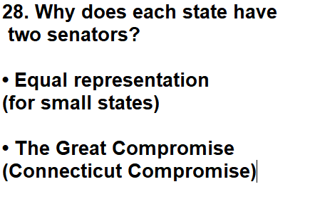 | 028. Why does each state have two senators? |