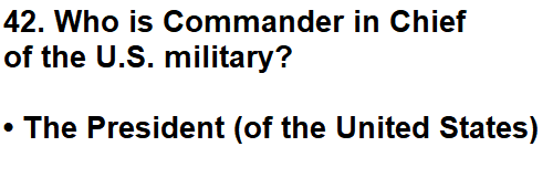 | 042. Who is Commander in Chief of the U.S. military? |