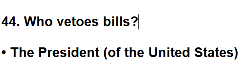 | 044. Who vetoes bills? |