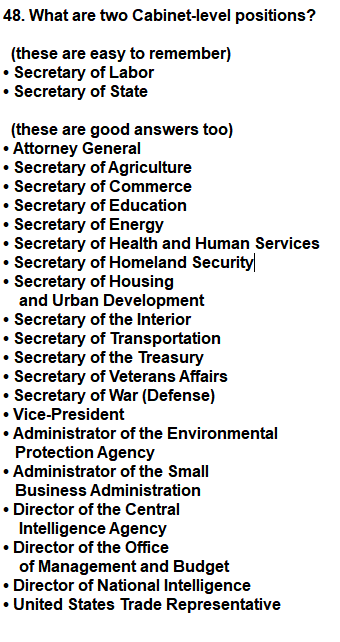 | 048. What are two Cabinet-level positions? |