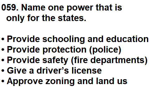 | 059. Name one power that is only for the states. |