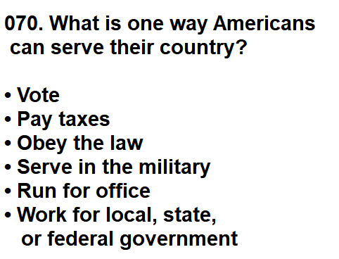 | 070. What is one way Americans can serve their country? |