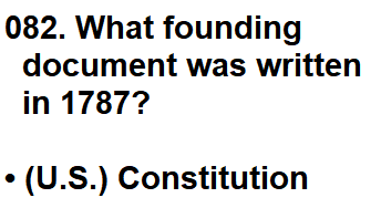 | 082. What founding document was written in 1787? |