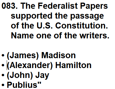 | 083. The Federalist Papers supported the passage of the U.S. Constitution. Name one of the writers. |