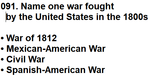 | 091. Name one war fought by the United States in the 1800s |