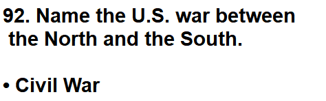 | 092. Name the U.S. war between the North and the South. |