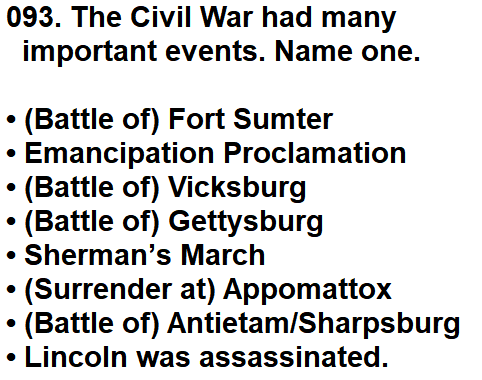 | 093. The Civil War had many important events. Name one. |