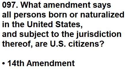| 097. What amendment says all persons born or naturalized in the United States,