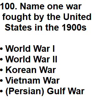 | 100. Name one war fought by the United States in the 1900s, |