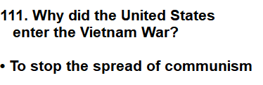 | 111. Why did the United States enter the Vietnam War? |
