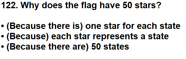 | 122. Why does the flag have 50 stars? |