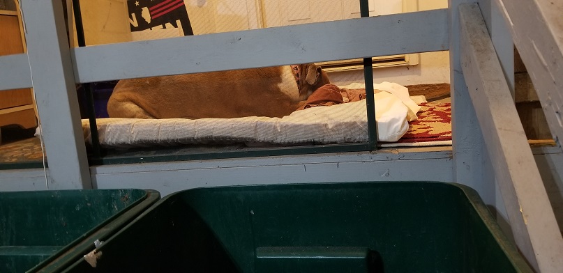 He said "Down" when I was halfway up the stairs. Ok, front end is down!